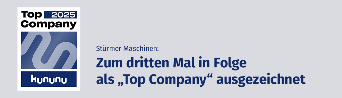 Once again this year, the best employers from the point of view of their employees have been recognised. For the third time in a row, Stürmer Maschinen GmbH has qualified for the "kununu Top Company Seal“. This seal is awarded by the...