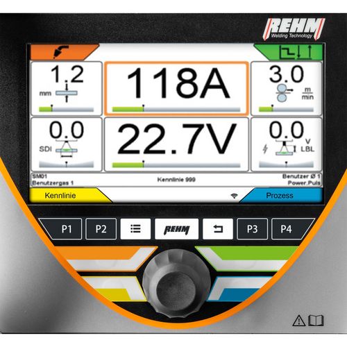 • 7" large color display with Sirius user interface: two different operating modes selectable, operation like stepless units (-> all welding parameters and settings at a glance) or operation like stepped units (-> step adjustment from the torch)