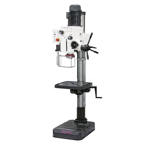 - Solid precision surface machined base plate; by pivoting away the drill table can be used as a work surface for particularly high workpieces