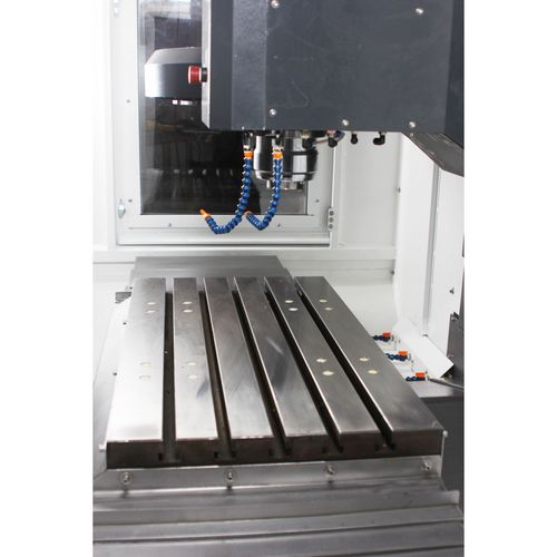 • Solid, precise milling table with five T-slots, large dimensions and precision ground