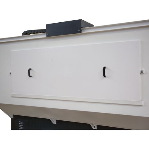• Lockable chip guard moves with the bed slide with integrated position indicator and coolant hose, can be moved manually