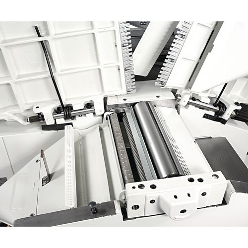• Large extension arm (1200 x 650 mm) with material roll and extendable aluminium telescopic stop up to max. 3200 mm with professional stop flaps
